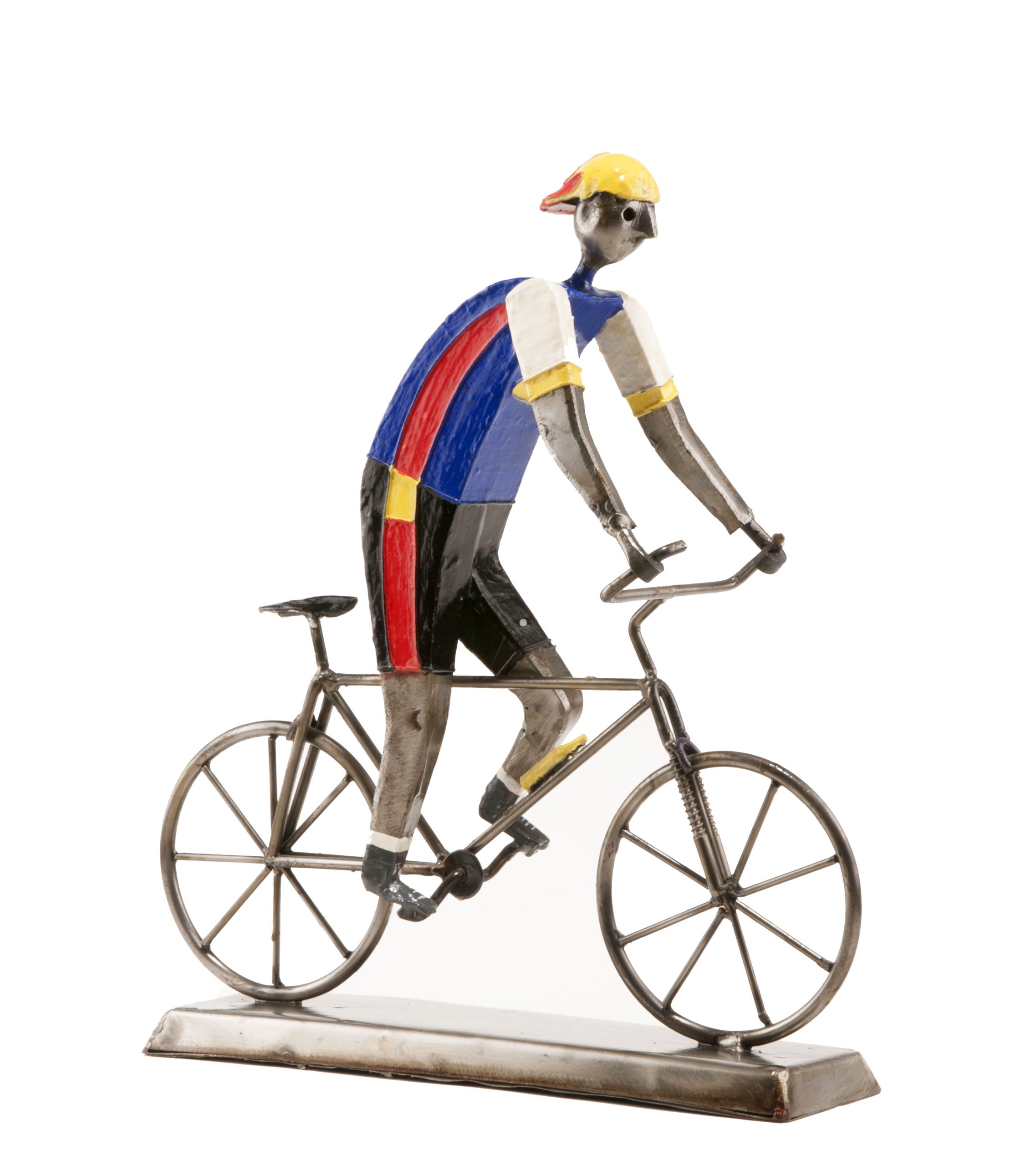 Ciclista de montaña. Montañas, caminos y nuevos retos: así es la vida de un ciclista apasionado. Escultura perfecta para la decoración de un gran deportista.