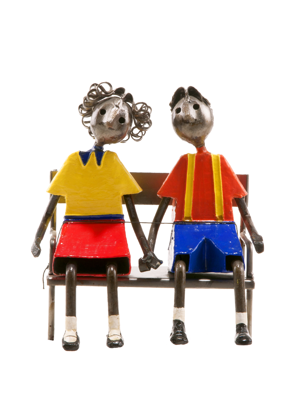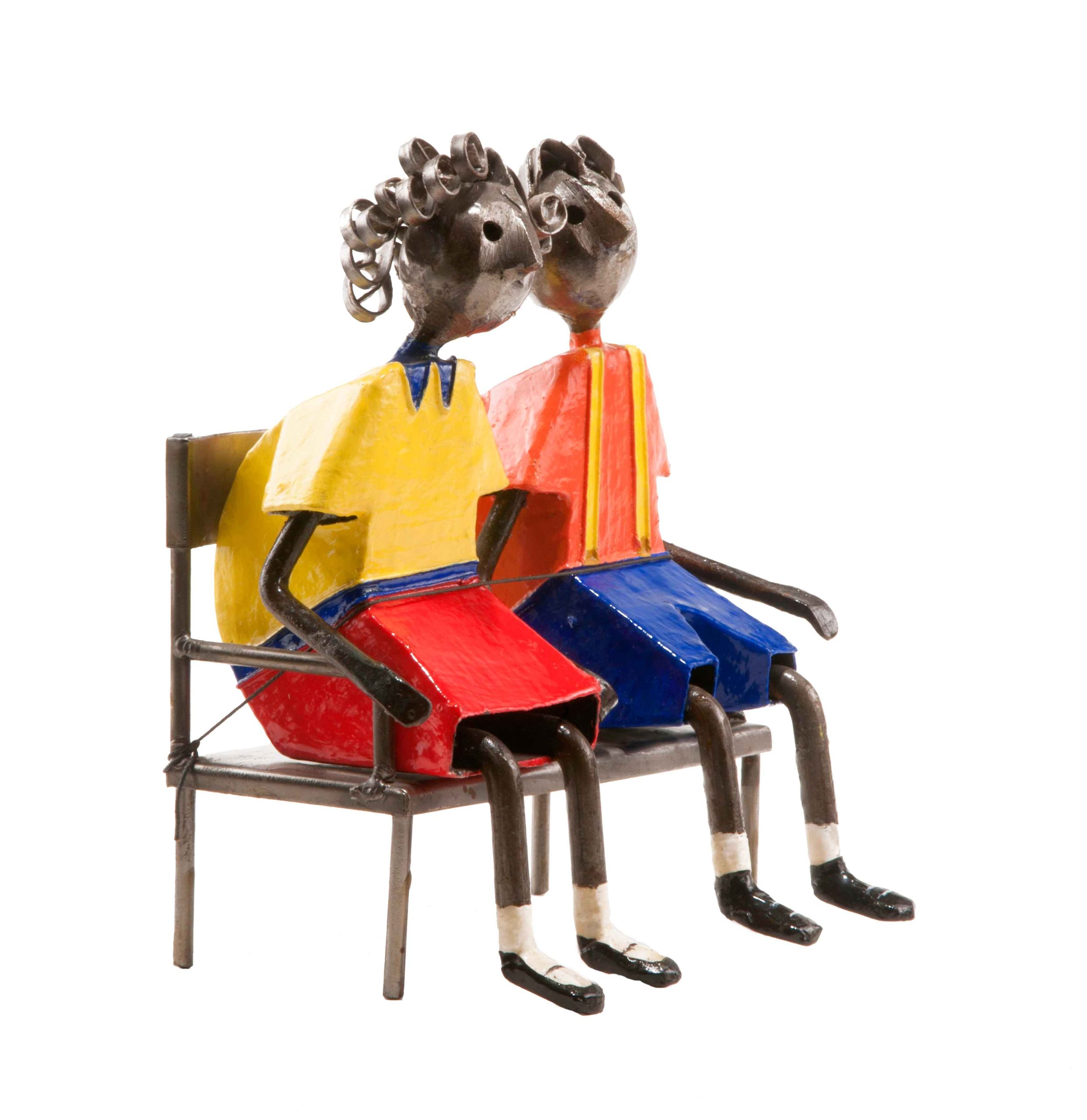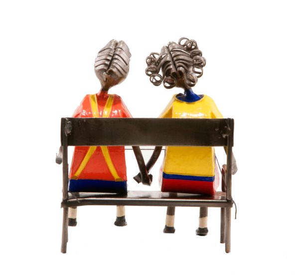 Enamorados en banca. El amor es el sentimiento más puro del hombre. Esta artesanía mexicana basada en este sentimiento busca mostrar el amor entre dos personas.
